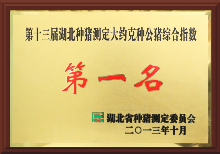 第十三屆湖北種豬測定大約克種公豬綜合指數第一名